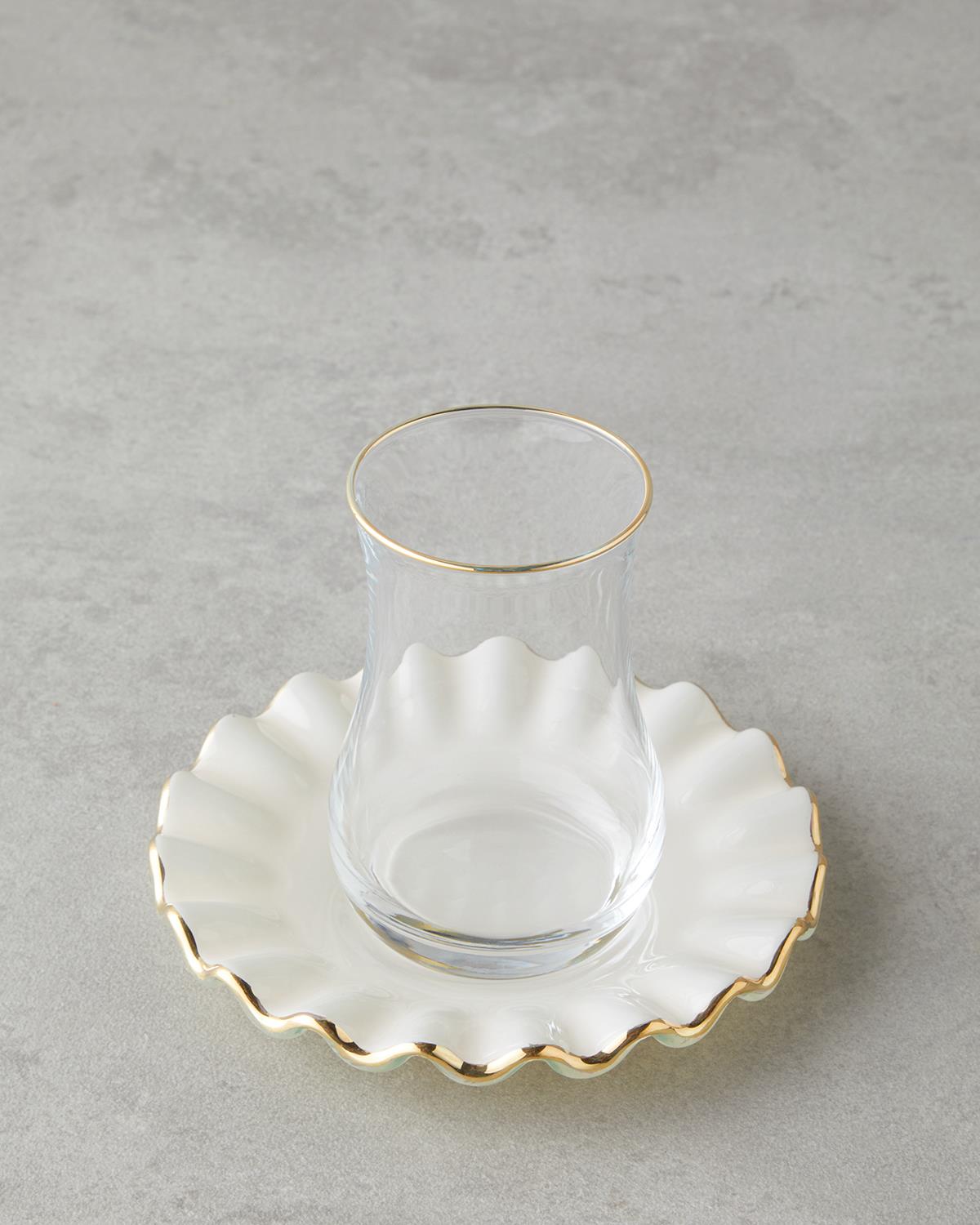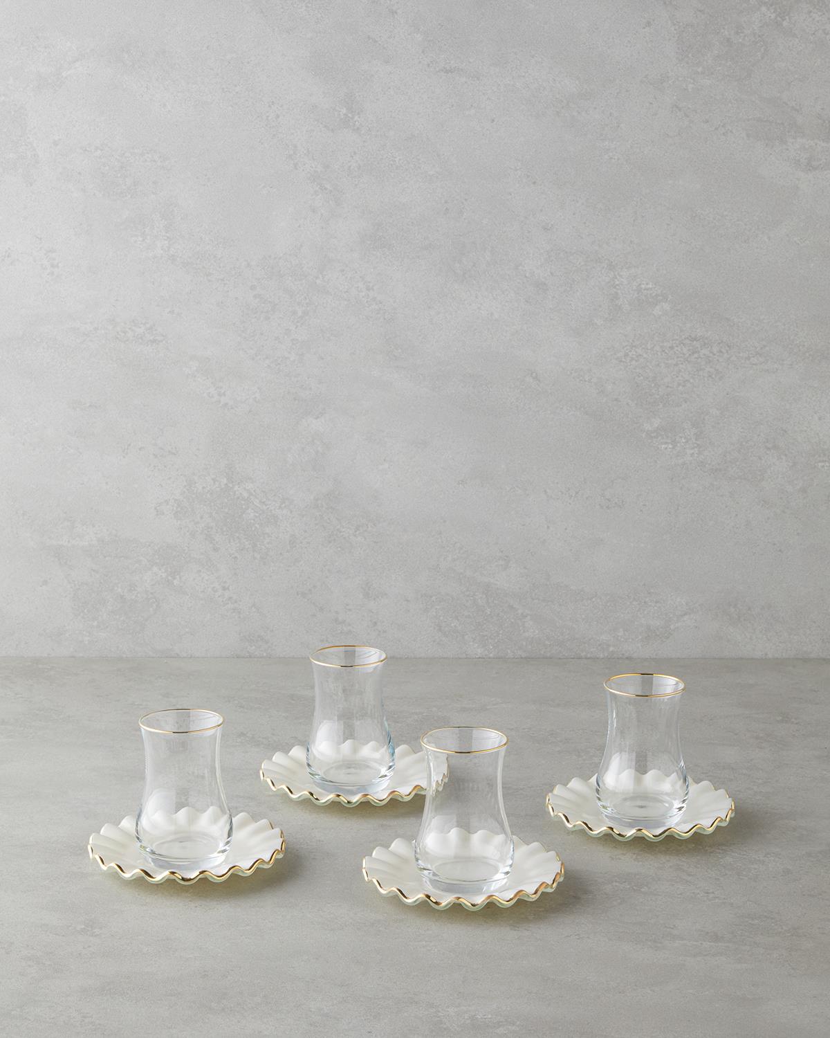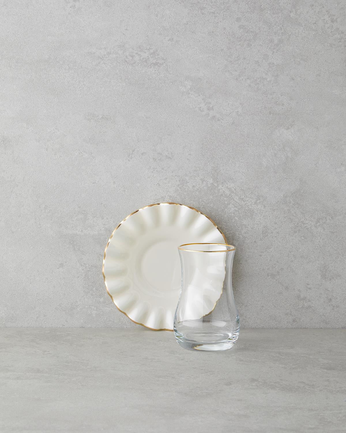 English Home Lustre Cam 8-teiliges 4-Personen Çay Seti – 170 ml Creme-Gold