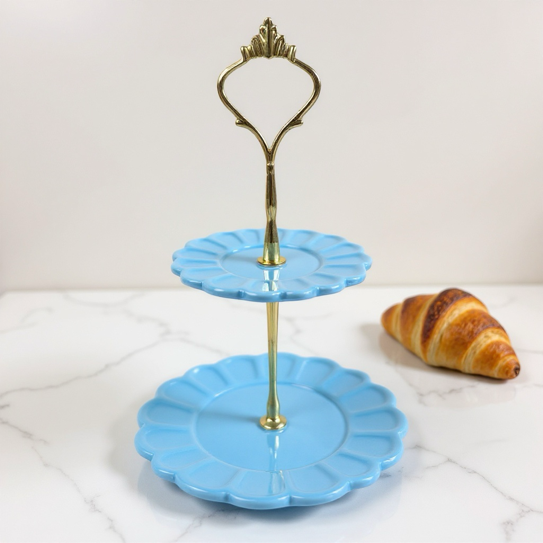 Etagère "Flora" Blau – 2-stöckig mit Goldgriff